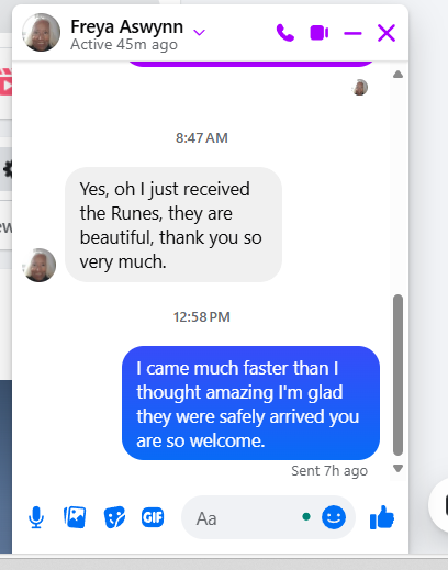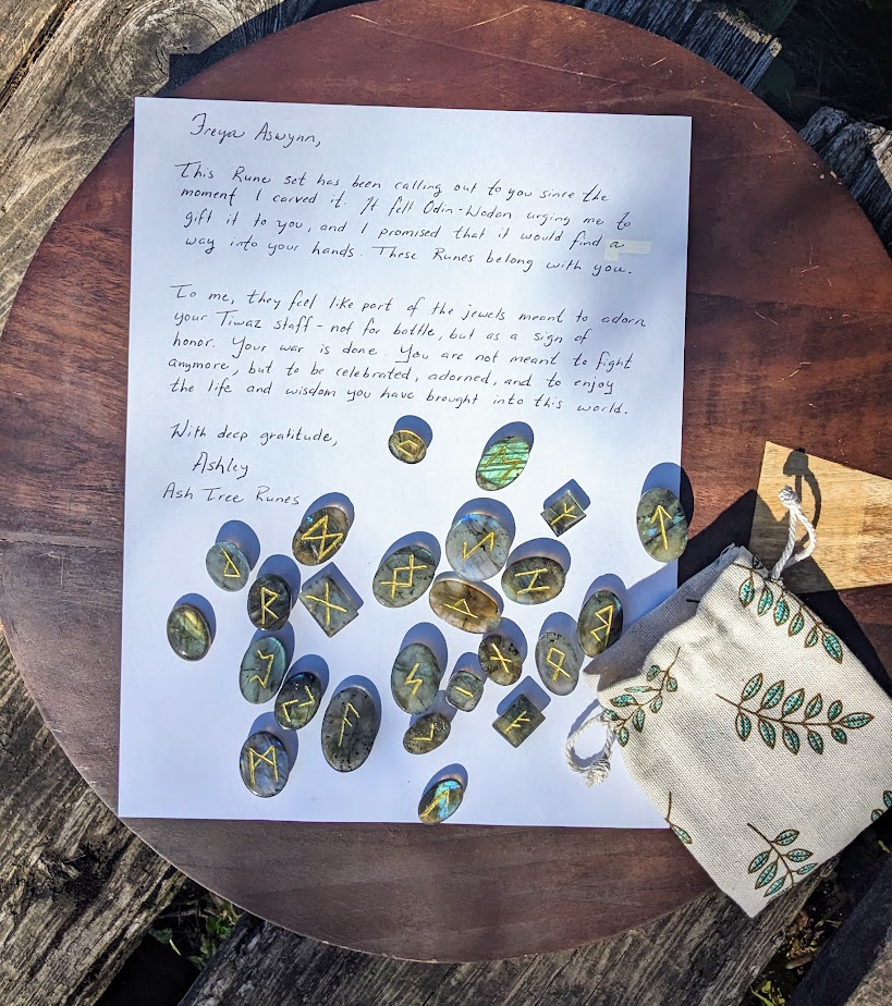 With love and deep respect, I send these Runes on their journey to her. This gift is both for Freya herself, and for the living tradition of the Runes that she has helped keep alive for us all.