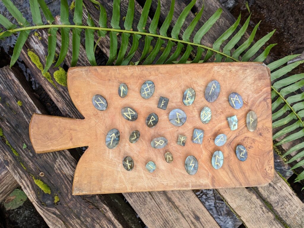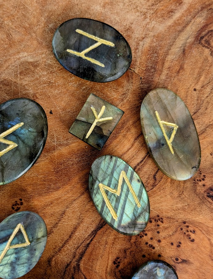 Honoring Freya Aswynn with a Hand-Carved Rainbow Labradorite Rune Set - Ash Tree Books and Runes