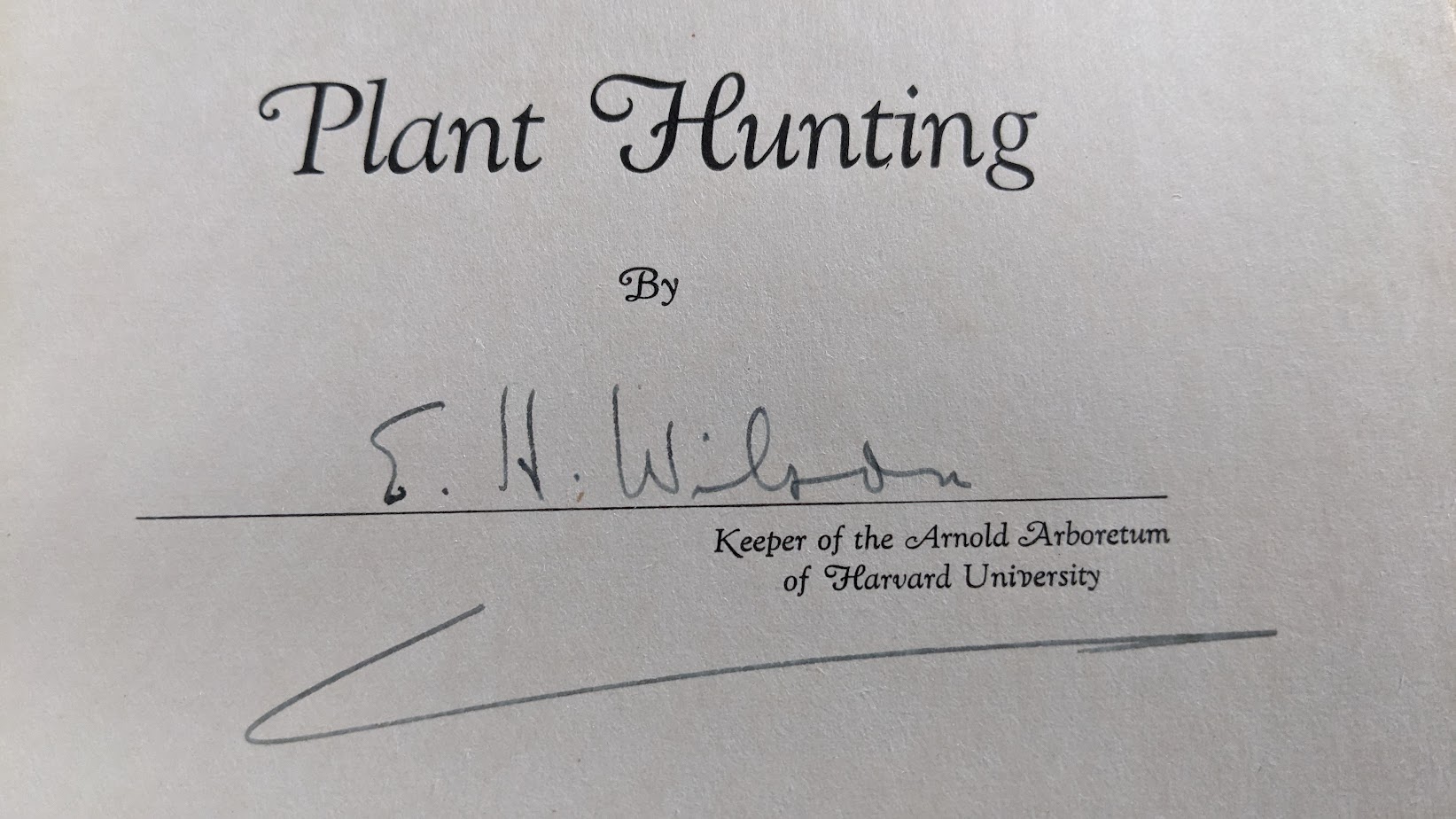 signature up close – 1927 Plant Hunting by Ernest H. Wilson – autographed edition- First Edition