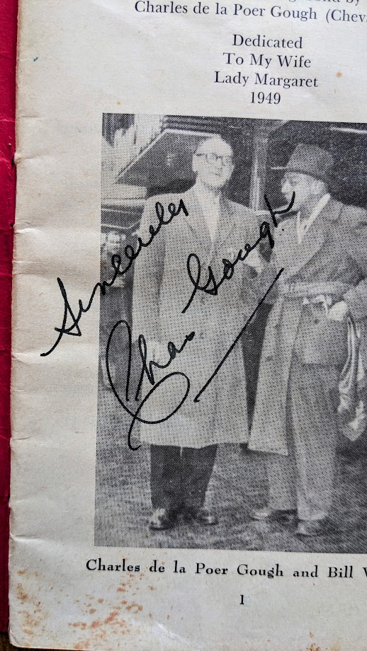 What makes this particular copy especially interesting is the signature. Inside, across a printed photograph of the author with Bill Ward, Charles de la Poer Gough has signed his name in pen. The signature shows clear pressure and ink marks consistent with a live autograph, not a reproduction.